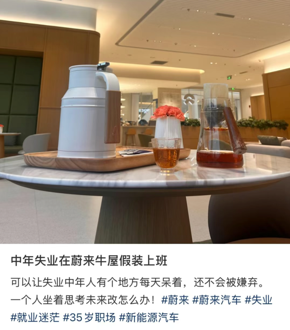 还有些品牌4S店直接把门店变成社交场,蔚来的牛屋定期有瑜伽、烘焙、手工等活动,无聊的年轻人直接把这当成带娃、社交圣地。