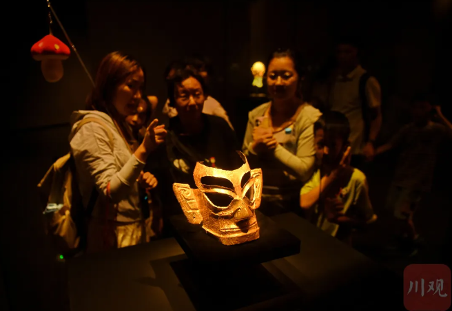 在位于四川省广汉市的三星堆博物馆,金面罩吸引游客驻足观看 图据川观新闻