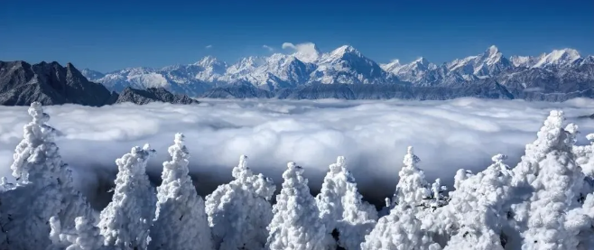 云海写意蜀地宽,霞沉雾海,泼墨碧空苍茫。峨眉山,云海无垠,似海浪翻卷,又若银河倾泻。牛背山,雪顶与白云相映生辉,像江河奔腾而下,形成道道流动白瀑。瓦屋山,云蒸霞蔚,自有气象。